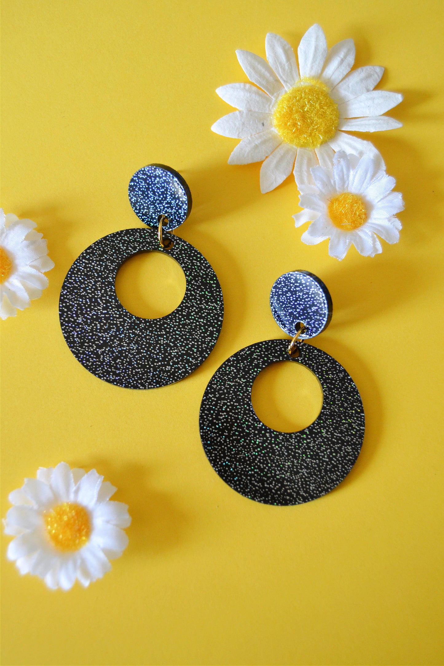 My classic, best-selling gogo hoops now come in 5 more amazing acrylic options! These 60s inspired laser-cut acrylic hoops are lightweight, make a retro statement, and are finished with hypoallergenic gold-plated stainless steel stud post backings for closure.